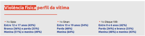 • Violência sexual – Qualquer ato libidinoso com menores de 14 anos é considerado estupro de vulnerável. Além disso, em adolescentes maiores qualquer ato não consentido ou tentado também é violência.