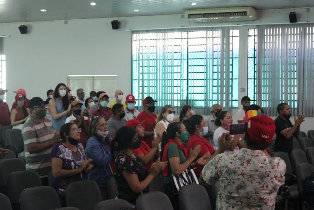 “Companheiro Zé Maria, aqui estamos nós, falando por você, já que calaram sua voz”. Durante mais de duas horas de diálogo, essas e outras palavras de ordem foram entoadas por cerca de 130 pessoas durante audiência pública promovida nesta segunda-feira (27/6) em Limoeiro do Norte. O encontro foi articulado pela Defensoria Pública do Estado do Ceará (DPCE) com o objetivo de discutir soluções para as mais de 70 famílias ameaçadas de reintegração de posse na Chapada do Apodi, sobretudo no Assentamento Zé Maria do Tomé. Com a presença de representantes da instituição e lideranças locais, o momento foi de intensa reivindicação pelas terras que, segundo as(os) acampadas(dos), são de fato e de direito dos que lá estão.