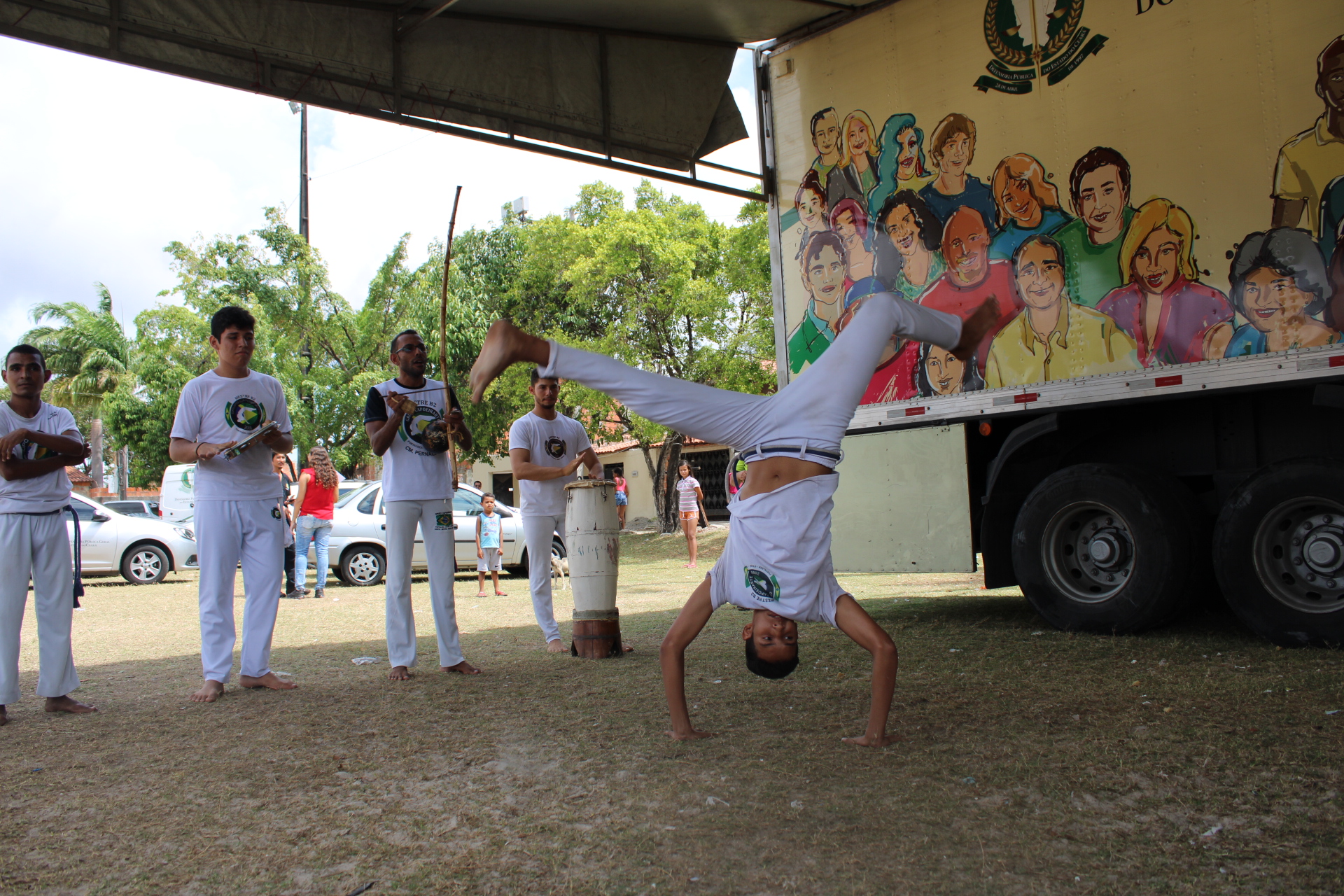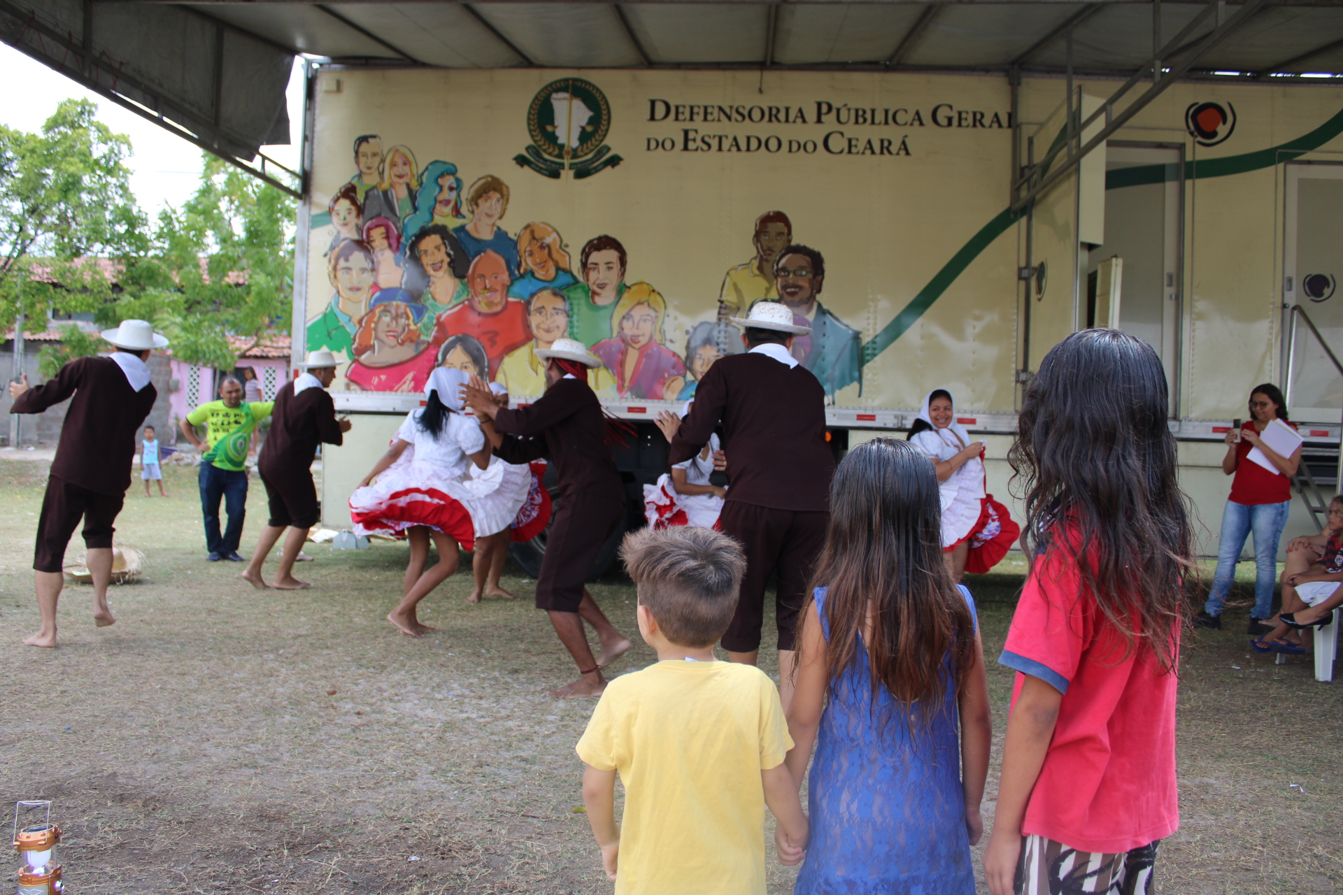 Durante toda a manhã, o projeto Defensoria em Movimento esteve estacionado no campo de futebol da comunidade. O objetivo é chegar a lugares onde a população tem dificuldades de acesso à justiça. Por isso, o projeto circula em diversos bairros de Fortaleza e localidades do Interior do Estado. Com a estrutura, a população pôde acessar seus direitos, entrar com ações judiciais e esclarecer dúvidas.