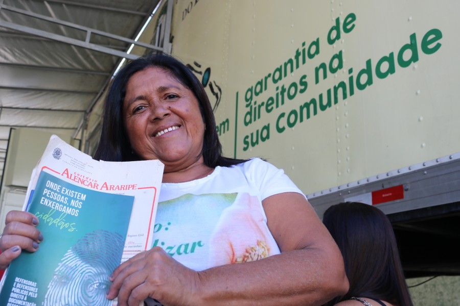 A doméstica J.R.L. veio atrás do registro do filho. Ele está preso e sem documentação alguma. Ela precisou se dirigir ao cartório, mas não possui dinheiro para a taxa de R$ 47,00 para emissão da segunda via. “Lá eles mandam a gente procurar a Defensoria e tive a sorte de vocês estarem aqui no meu bairro”, disparou. Para começar a ajudar o filho, J. solicitou à Defensoria um ofício para emitir a segunda via da certidão gratuitamente. Dali, os passos seriam buscar instituto de identificação mais próximo para tirar o novo Registro Geral, a chamada carteira de identidade. “Mas como ele tá preso, vamos ter que esperar ele sair, mas pelo menos ele terá a certidão”, diz.