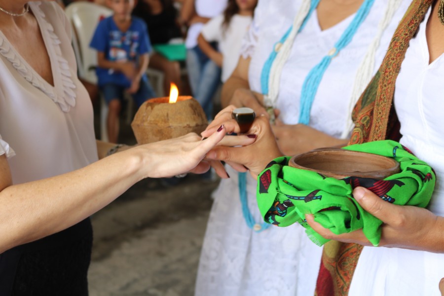Reconhecimento, orgulho e legitimidade. Esses foram os ideias que guiaram a cerimônia de renovação de votos de dez defensoras públicas junto com a posse popular da defensora pública Renata Emili Leite Mota, no bairro Vila Velha, na manhã desta sexta-feira, 18. O momento, guiado pela ouvidora externa da Defensoria Pública, Meire Coelho; pela Mãe Tecla, da Rede de Religiões Afro-brasileiras e Saúde (Renafro), e pela teóloga biblista do Centro de Estudos Bíblicos do Ceará, Ana da Costa; foi realizado em alusão ao Dia do Defensor e da Defensoria, 19 de maio, durante o atendimento à população, no projeto Defensoria em Movimento.