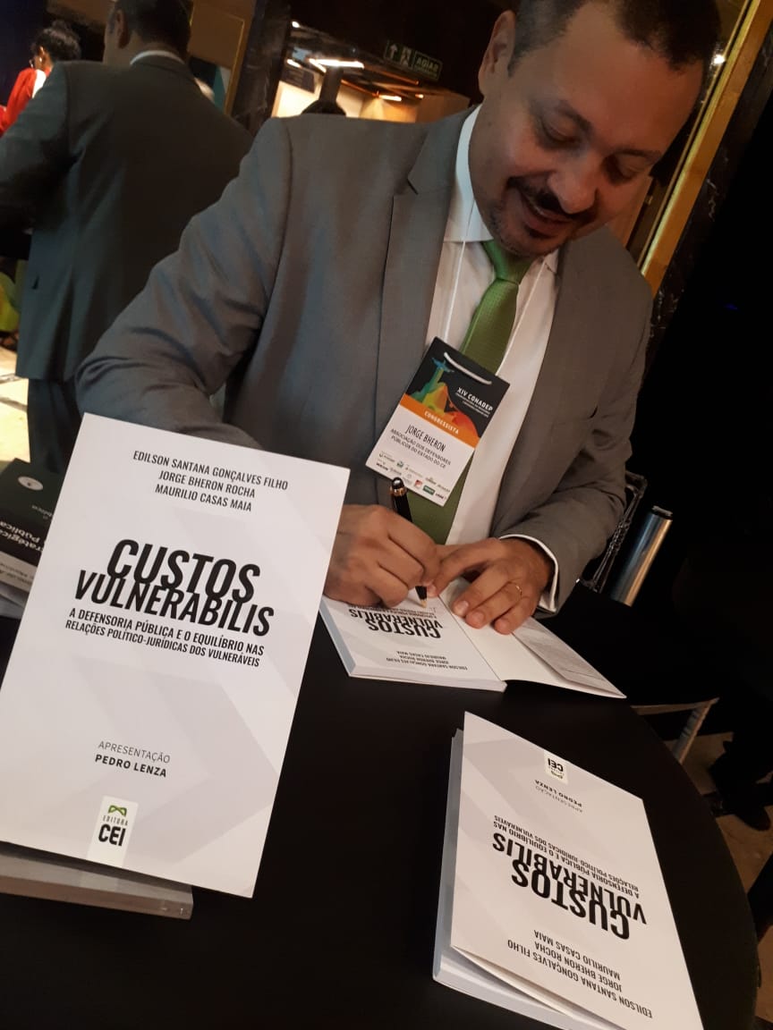Por fim, o defensor público Jorge Bheron Rocha, titular do Núcleo de Assistência ao Preso Provisório e às Vítimas de Violência (Nuapp), lançou o livro “Custos Vulnerabilis – A Defensoria Pública e o equilíbrio nas relações político-jurídicas dos vulneráveis”. Para o defensor escritor, a Defensoria Pública é o órgão do Sistema de Justiça e Promoção Social mais próximo da sociedade, graças a sua atuação no atendimento ao público de forma direta e massiva. “Tem-se no Estado-Defensor um órgão de índole democratizante que tem em sua missão modernizada no sentido de efetivar direitos e garantias fundamentais de um lado, e contribuir ativa e preventivamente para o aperfeiçoamento do Estado Democrático de Direito. Neste sentido, sobressai a atuação da Defensoria Pública como Amicus Democratiae, colaborando para o debate sobre formulação e implementação de políticas públicas e propostas legislativas que visem a concretizar direitos e garantias fundamentais dos cidadãos, em especial dos vulneráveis”, destaca Jorge Bheron Rocha.