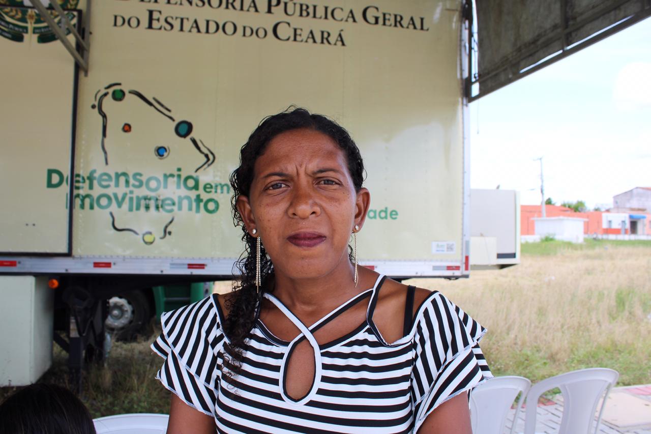 Luiza da Silva veio procurar informações sobre o processo criminal que respondem o filho e a nora dela. “Meu filho foi transferido para Fortaleza e não tenho como ir até lá, tento me mexer por aqui buscando a Defensoria para ajudar a saber como está o cumprimento da pena, não só dele, mas também da minha nora, que está em uma unidade daqui”, afirma. “Ter esse caminhão a minha disposição foi uma ótima ideia, porque é rápido e acessível. Agradeço a Defensoria”.