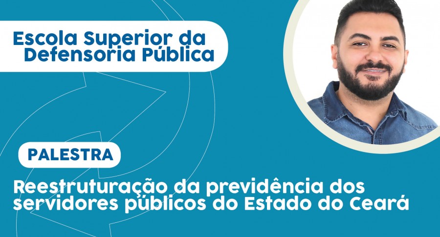 A Escola Superior da Defensoria Pública (ESDP) do Estado do Ceará realiza na próxima sexta-feira, 30, às 08:30, a palestra de tema “Reestruturação da Previdência do Servidores Públicos do Estado do Ceará”. O evento será ministrado pelo advogado e especialista em Direito e Processo do Trabalho e Direito Previdenciário, Jaerbeth Correia, e é aberto ao público.