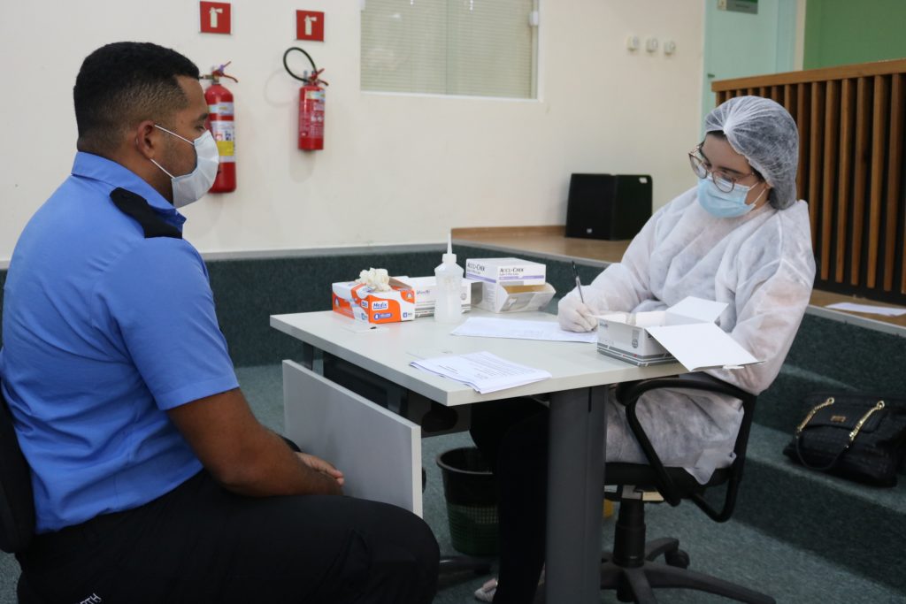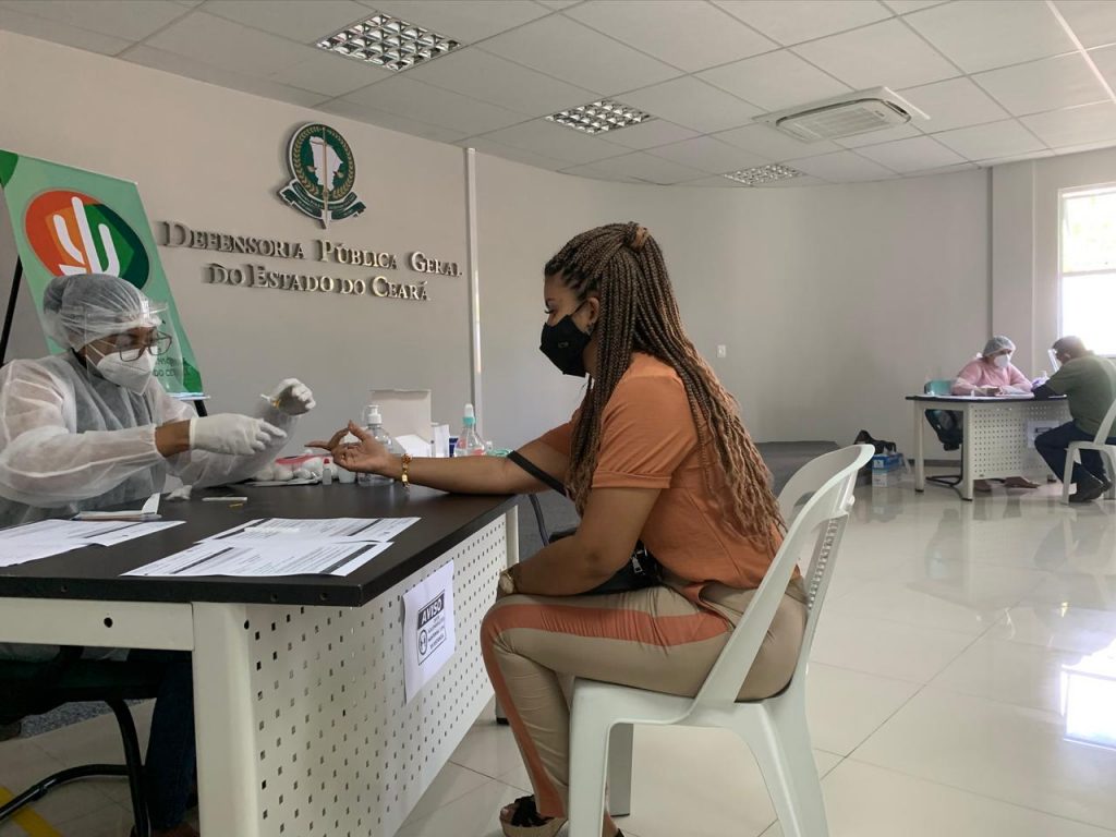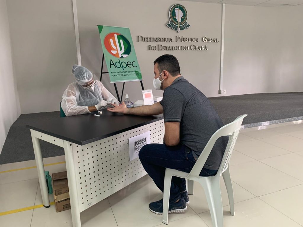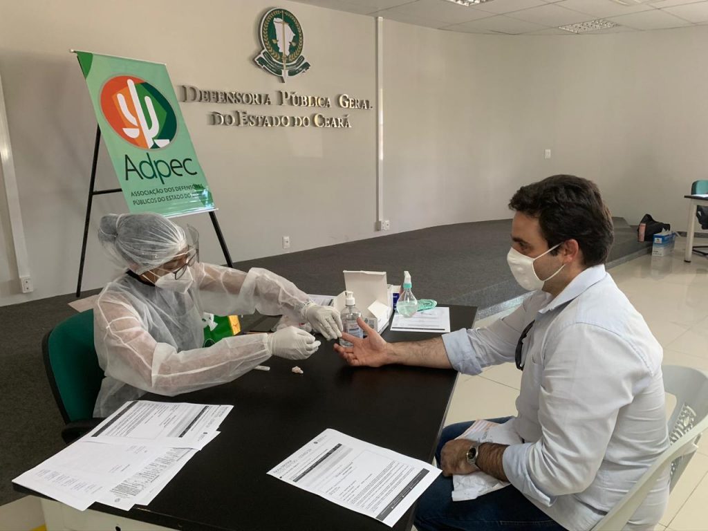 Na última quarta-feira, 14, defensores, colaboradores e estagiários da região do Cariri tiveram seus testes de Covid-19 realizados por meio de uma parceria da Defensoria com a Associação das Defensoras e Defensores Públicos (Adpec). A ação, que aconteceu das 8h às 17 horas, contou com a realização de 59 testes-rápidos, e ocorreu na sede de Defensoria Pública em Juazeiro do Norte.