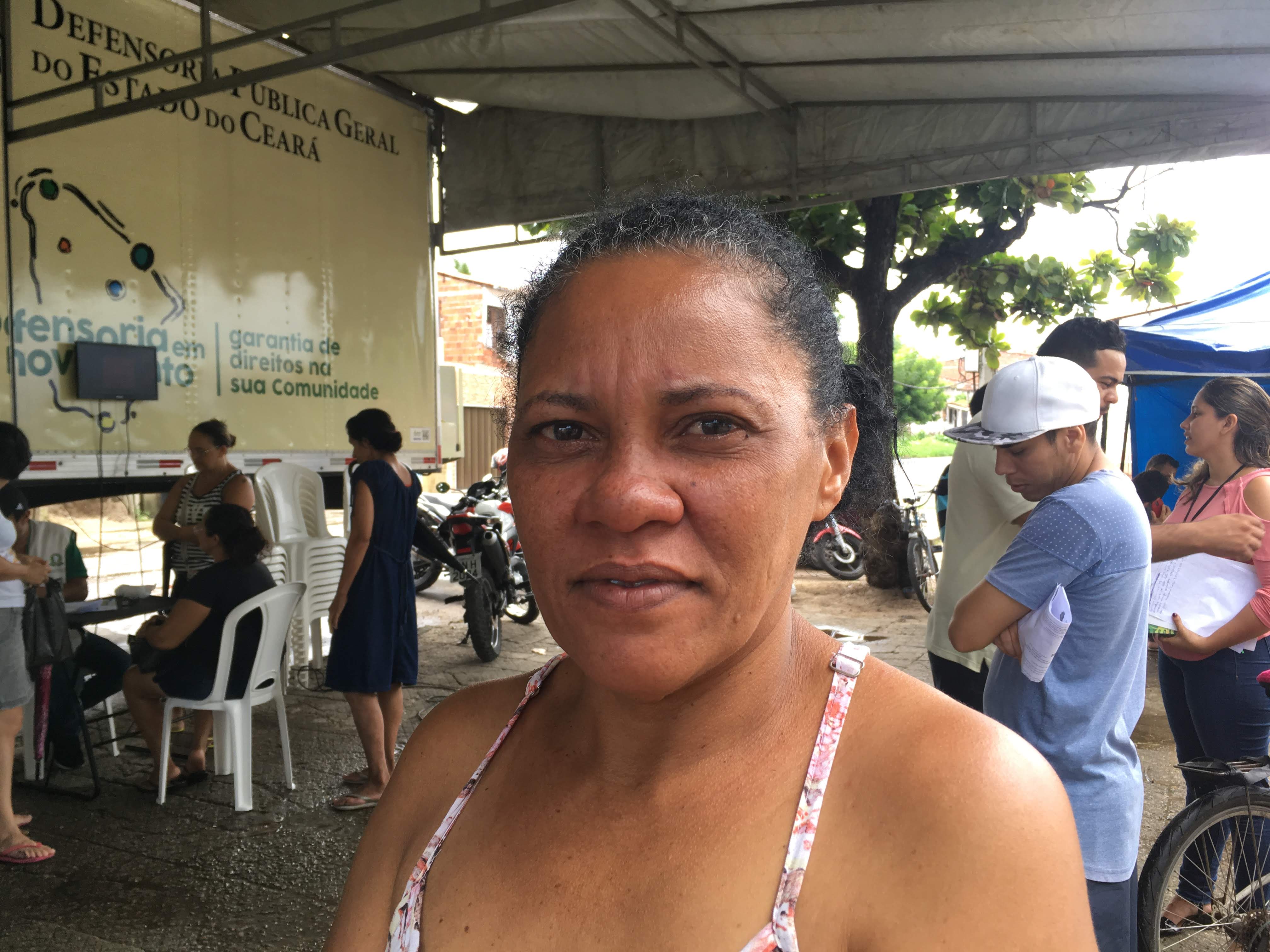 Marta Ferreira da Silva é uma delas. A dona de casa é mãe de quatro filhos e faz “bicos como empregada doméstica”. A rotina é de tripla jornada, e mesmo com a chuva, arrumou um tempo para procurar informações sobre seus direitos. “Vim saber mais sobre como regularizar o imóvel do meu pai, que está internado no hospital. Minha vida é acordar às cinco da manhã, levantar meus filhos e encaminhá-los para a escola, trabalhar em casa de família, acompanhar meu pai internado e chegar em casa à noite para aprontar tudo pro dia seguinte”, diz. A infância difícil apontou para ela um caminho de dificuldades. “Sou mulher, nasci na periferia e não tive acesso a estudo. Nós sofremos discriminação na hora de procurar emprego, só conseguimos os que pagam menos. Ao mesmo tempo, também temos que cuidar da casa, da nossa família. É puxado! Tenho duas filhas, incentivo que elas estudem e tenham um futuro diferente”, afirma.