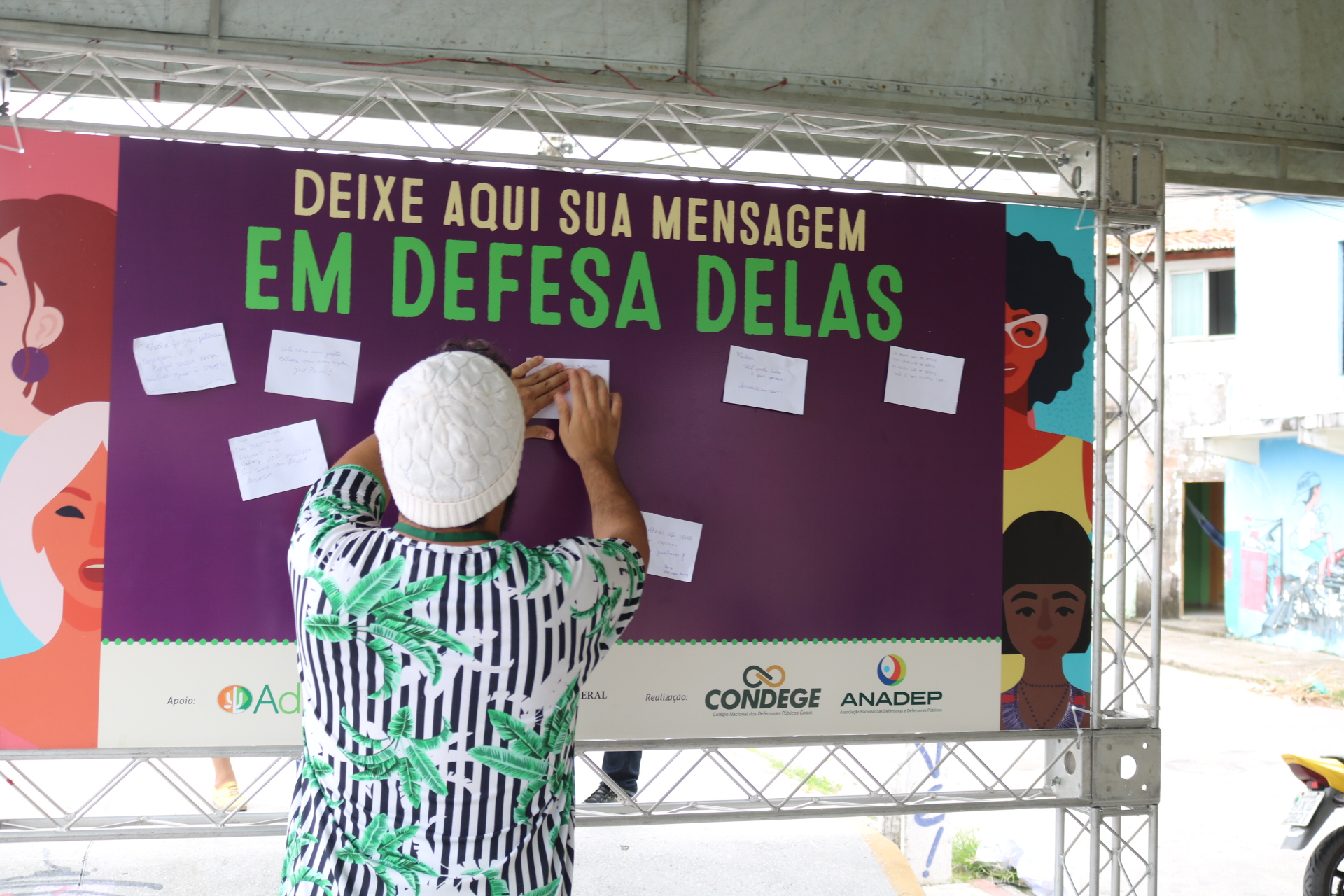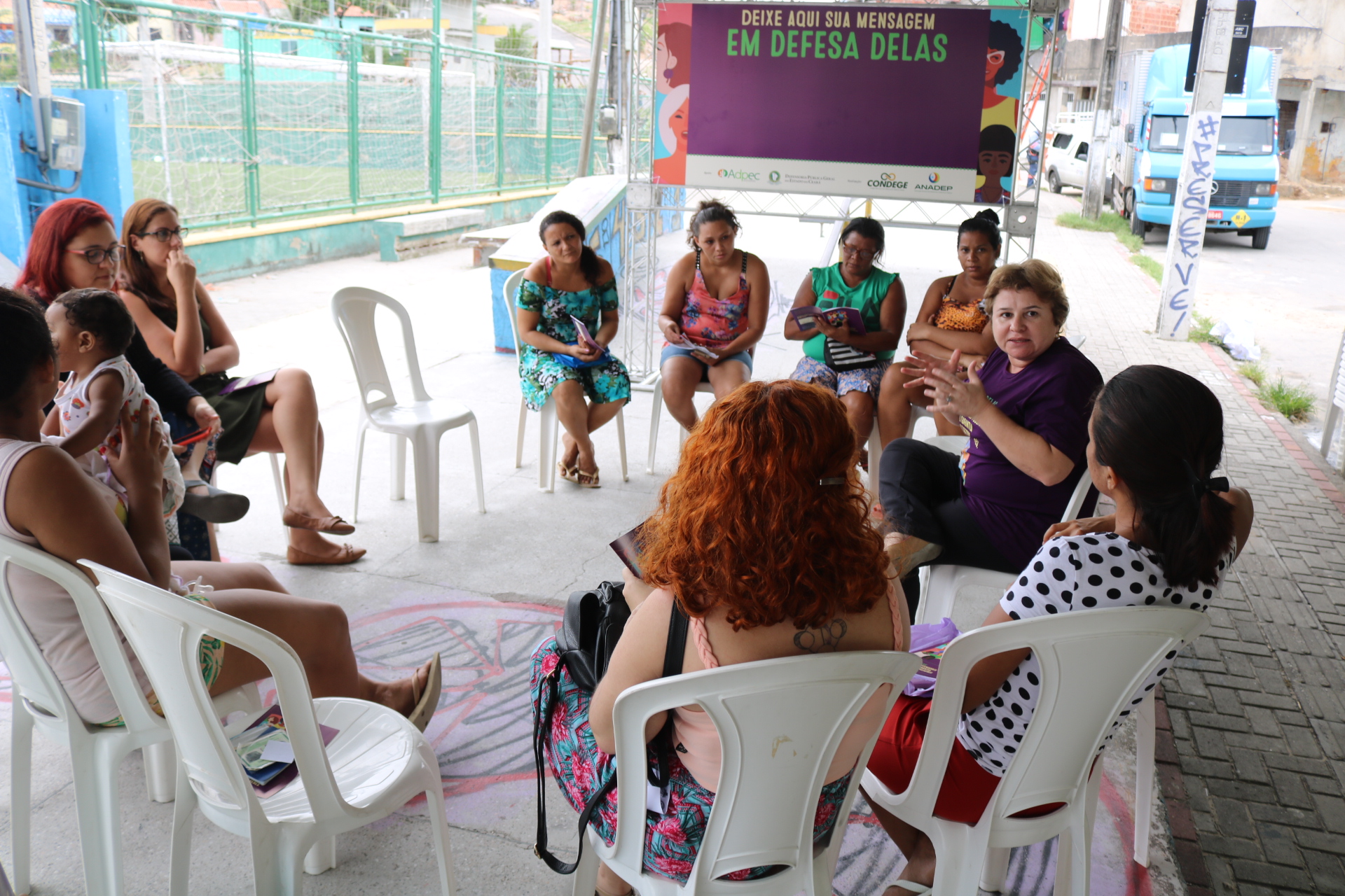 Por conta disso, a Associação Nacional das Defensoras e Defensores Públicos (Anadep) lançou a campanha “Em Defesa Delas: defensoras e defensores públicos pela garantia dos direitos das mulheres”, que neste ano apresenta à população o trabalho da Defensoria Pública em favor da garantia de direitos para as mulheres. No Ceará, a Defensoria Pública, em parceira com a Associação dos Defensores Públicos do Estado (Adpec), realiza uma série de ações para chamar a atenção da população para a temática. O projeto Defensoria em Movimento esteve durante os dias 7 e 8 de maio na Areninha do Grêmio, na Barra do Ceará, em Fortaleza, e ao longo de todo o mês de maio visitará outras localidades levando assistência jurídica e educação em direitos para mulheres.
