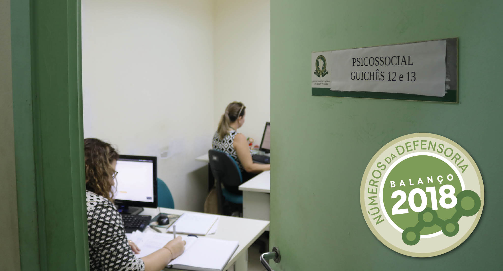 Após três anos de implementação do serviço psicossocial, a Defensoria Pública do Estado do Ceará chega a marca de 45.296 atendimentos e conta com 15 profissionais formados em Psicologia e em Serviço Social. Em 2018, foi registrado o atendimento a 20.526 pessoas. O setor acolhe aqueles que buscam assistência jurídica para questões diversas na Defensoria Pública e, durante o atendimento, são encaminhadas para uma escuta qualificada com uma equipe de profissionais para identificar outras demandas que perpassam à demanda jurídica.