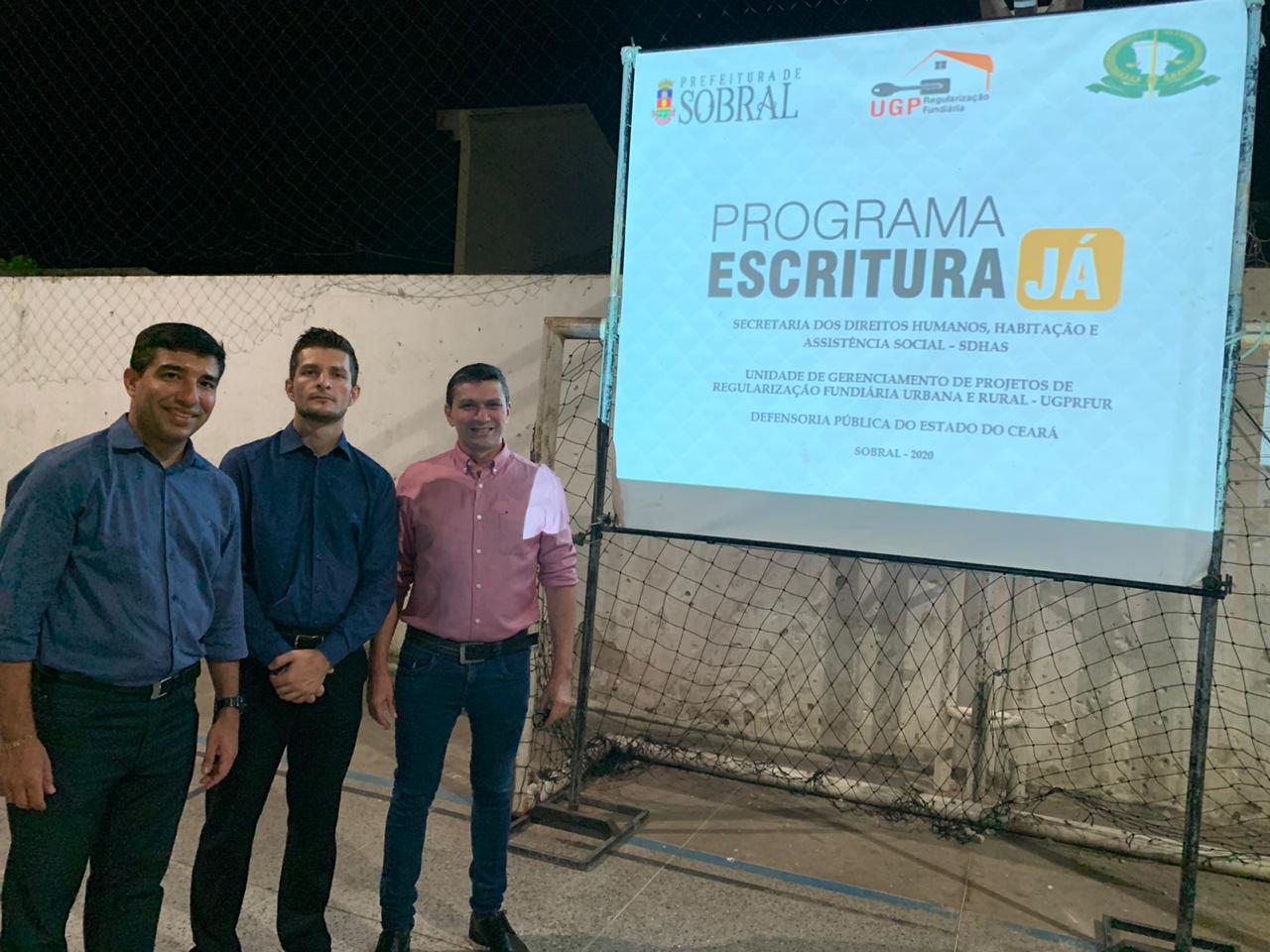 A Defensoria Pública do Estado do Ceará inicia as ações de usucapião para obtenção da declaração de propriedade (papel da casa) de 400 famílias residentes no Complexo Residencial Monsenhor Aloísio Pinto, em Sobral, cujos imóveis ainda não foram regularizados pela prefeitura. Na noite desta quinta-feira (12), os defensores públicos David Gomes Pontes, Pedro Aurélio Ferreira Aragão e Rafael Piaia participaram de uma audiência com os moradores e com representantes da Prefeitura de Sobral para explicar os procedimentos para a aquisição dos documentos.