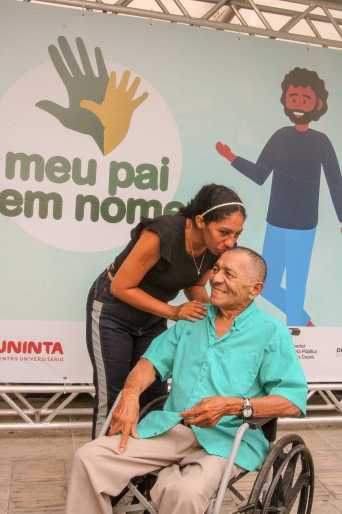 Investigação de paternidade – Cento e trinta e uma histórias foram agendadas para serem atendidas na capital cearense. Uma delas foi a do seu Antônio Vauires, de 50 anos, que iniciou uma ação de investigação de paternidade de três filhos. O caminhoneiro chegou cedo junto da ex-companheira e de três filhos pequenos, duas meninas e um menino. A energia das crianças condizia com o semblante ansioso do pai. Neste dia, Antônio confirmaria sua identidade como pai por meio do exame de DNA. “É importante fazer esse exame, tenho como provar a minha paternidade e com isso pretendo ficar ciente que meus filhos são meus. Porque a família é muito importante, a base da vida é a família”, conta. Ele deseja presença, assim como todos que passaram pelo portão da sede da Defensoria, no bairro Luciano Cavalcante. “Quero ver elas casarem, viverem a vida delas do jeito que elas quiserem”, complementa.