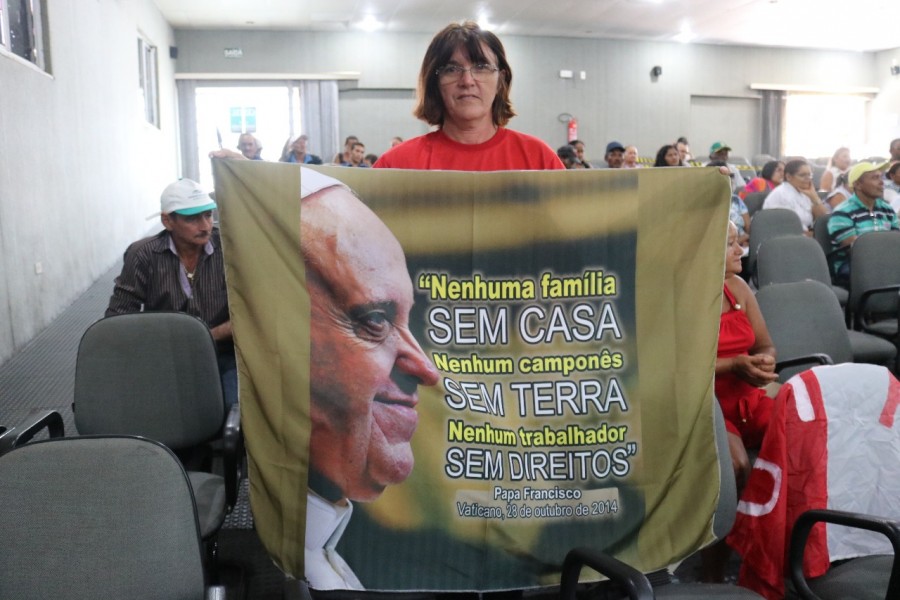A bandeira com a frase do papa Francisco simboliza o lema da luta de várias pessoas que participaram da audiência pública do III Orçamento Participativo da Defensoria Pública, em Limoeiro do Norte. O direito à moradia adequada, a necessidade de lutar por acesso à educação, à saúde e ao saneamento básico foram alguns dos temas apresentadas pela população que esteve presente no evento, sugerindo as ações mais importantes a serem implementadas pela Defensoria durante o ano de 2019. O encontro aconteceu na manhã desta sexta-feira (11), na sede do Núcleo de Informação Tecnológica, em Limoeiro do Norte.