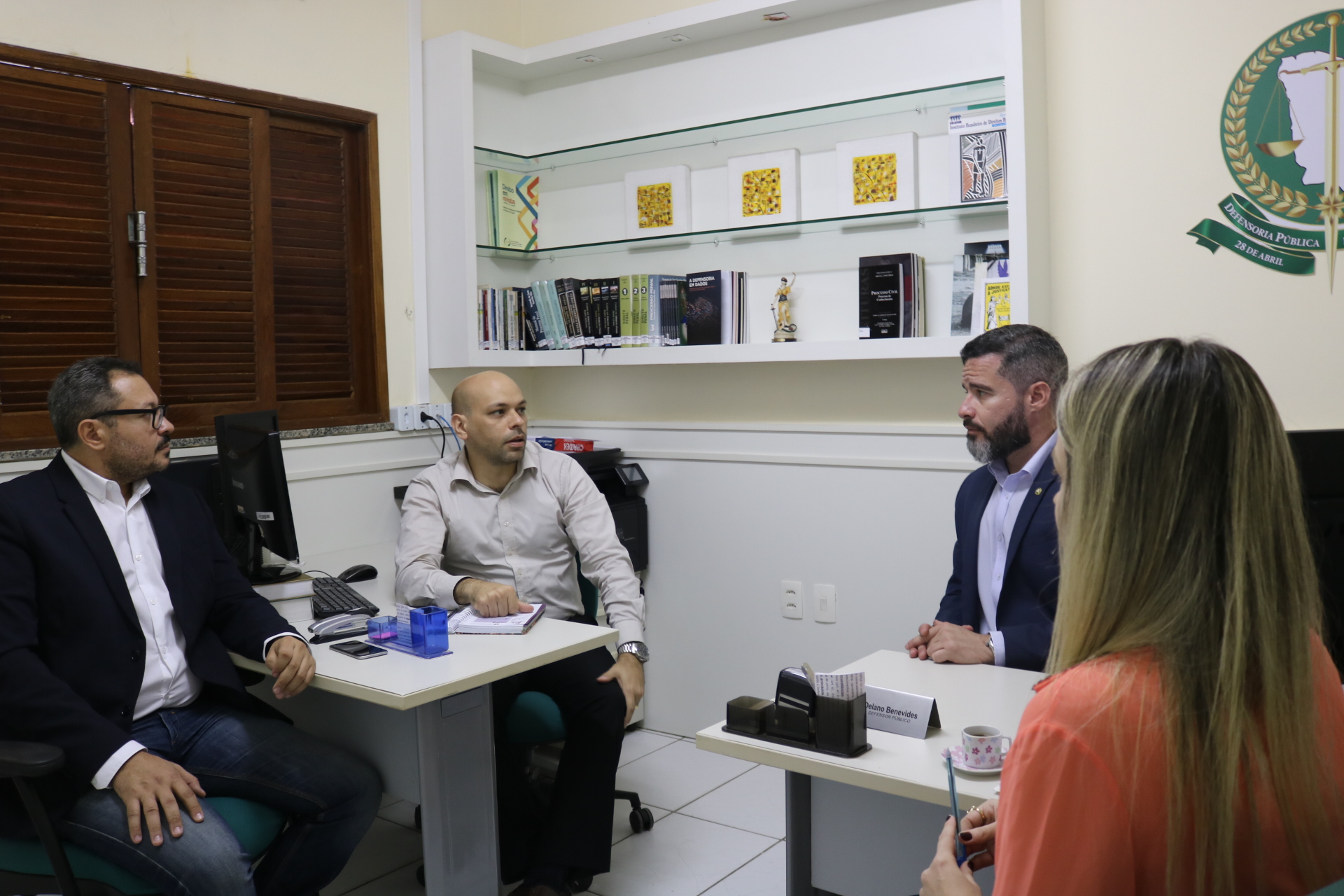 Nesta quarta-feira, 14, defensores públicos do Núcleo de Assistência ao Preso Provisório e às Vítimas de Violência (Nuapp) Carlos Nikholai Honcy, Jorge Bheron Rocha e Delano Benevides participaram de reunião com a coordenadora do Núcleo de Práticas Jurídica (NPJ) do Centro Universitário Farias Brito (FB Uni), Larissa Maia Nunes. A reunião teve objetivo de fazer um balanço do convênio entre Nuapp e FBUni, que existe desde 2018, para atuação de estagiários voluntários no Direito Criminal.