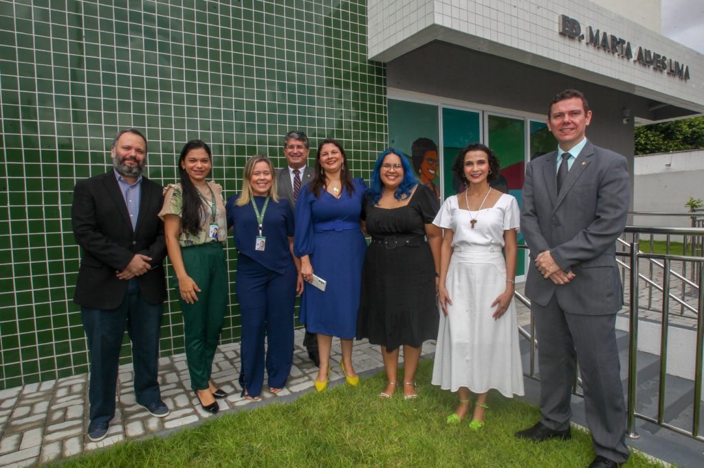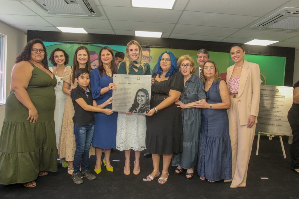 Durante a solenidade, uma homenagem ao nome que intitula o prédio: Marta Alves de Lima, colaboradora da Defensoria por mais de 20 anos e foi vitimada pela Covid-19. Os filhos Marília (que também trabalha na instituição), Mairla e Antônio Miguel estiveram presentes no descerramento da placa, marcado por emoção. “Eu estava aqui no começo do atendimento e escutei aqui três vezes o nome da minha mãe ‘Maria Gorete’ chamando, ela que já é falecida, e aí eu pensei: isso diz muito porque essa obra leva o nome de uma mãe, da nossa Martinha, uma batalhadora e que merece todas as homenagens. O mínimo que podemos fazer, por estes 20 anos de dedicação, é reconhecer todo o amor, este trabalho e a todos que lutam conosco por um mundo melhor”, ressaltou a defensora geral.
