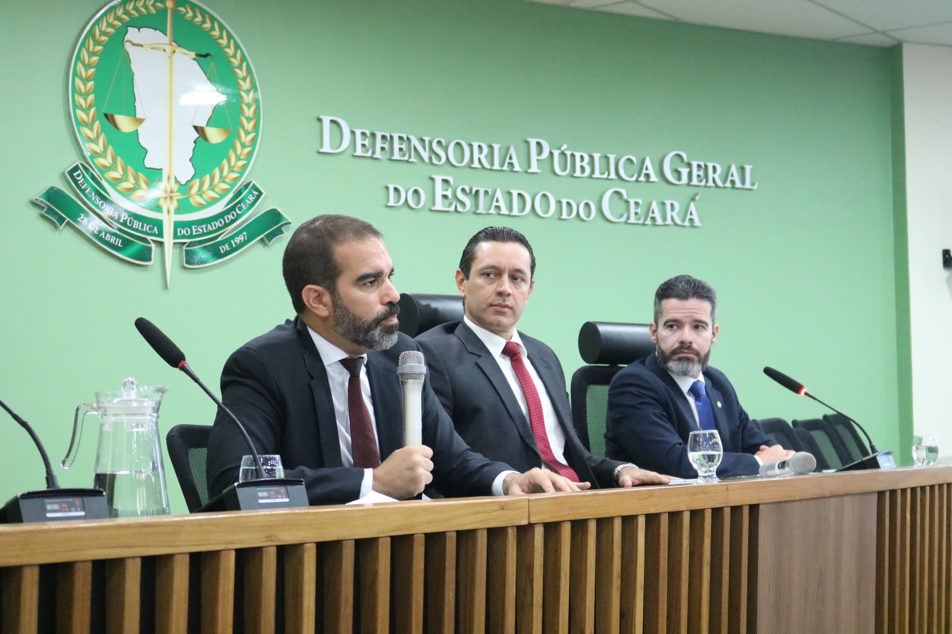 Mais de 180 pessoas compareceram ao auditório Jesus Xavier de Brito da Defensoria Pública do Estado do Ceará na manhã da última sexta-feira, 07, para a palestra de tema “Aspectos Processuais da Lei Anticrime”, com o professor Nestor Távora, mestre em Direito Público pela Universidade Federal da Bahia e especialista em Ciências Criminais pela Faculdade Jorge Amado. A mesa foi presidida pelo supervisor das Defensorias Criminais, Manfredo Rommel Maciel e debatendo o assunto, estava o defensor público titular do Núcleo de Assistência ao Preso Provisório e às Vítimas de Violência (Nuapp), Delano Benevides. O evento foi uma realização da Escola Superior da Defensoria Pública do Ceará (ESDP).
