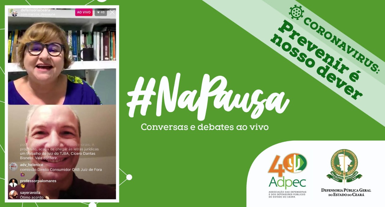 Estar atento às necessidades de comunicação mesmo em meio à pandemia também é premissa da Defensoria Pública do Estado do Ceará. Nessa perspectiva, em parceria com a Escola Superior e a Associação das Defensoras e Defensores Públicos do Estado do Ceará (Adpec), a Instituição realizou a primeira edição do #NaPausa, programa que leva conhecimento, informação e Direito aos usuários do Instagram.