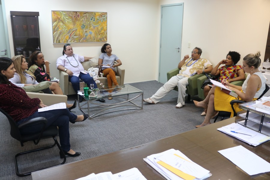 Participaram da reunião a secretária executiva da Defensoria Pública, Elizabeth Chagas; a supervisora do Núcleo de Direitos Humanos e Ações Coletivas (NDHAC), Sandra Moura; a ouvidora geral externa da Defensoria, Merilane Pires Coelho, a coordenadora Especial de Políticas Públicas para Promoção da Igualdade Racial (CEPPIR), Zelma Madeira; o representante do Conselho de Igualdade Racial do Estado do Ceará e membro do Coletivo Cultural de Matriz Africana IBILÉ, Ogan Leno Farias e o conselheiro estadual de promoção de igualdade racial e presidente do Centro Espirita Universalista Tupinambá, André Guerra.