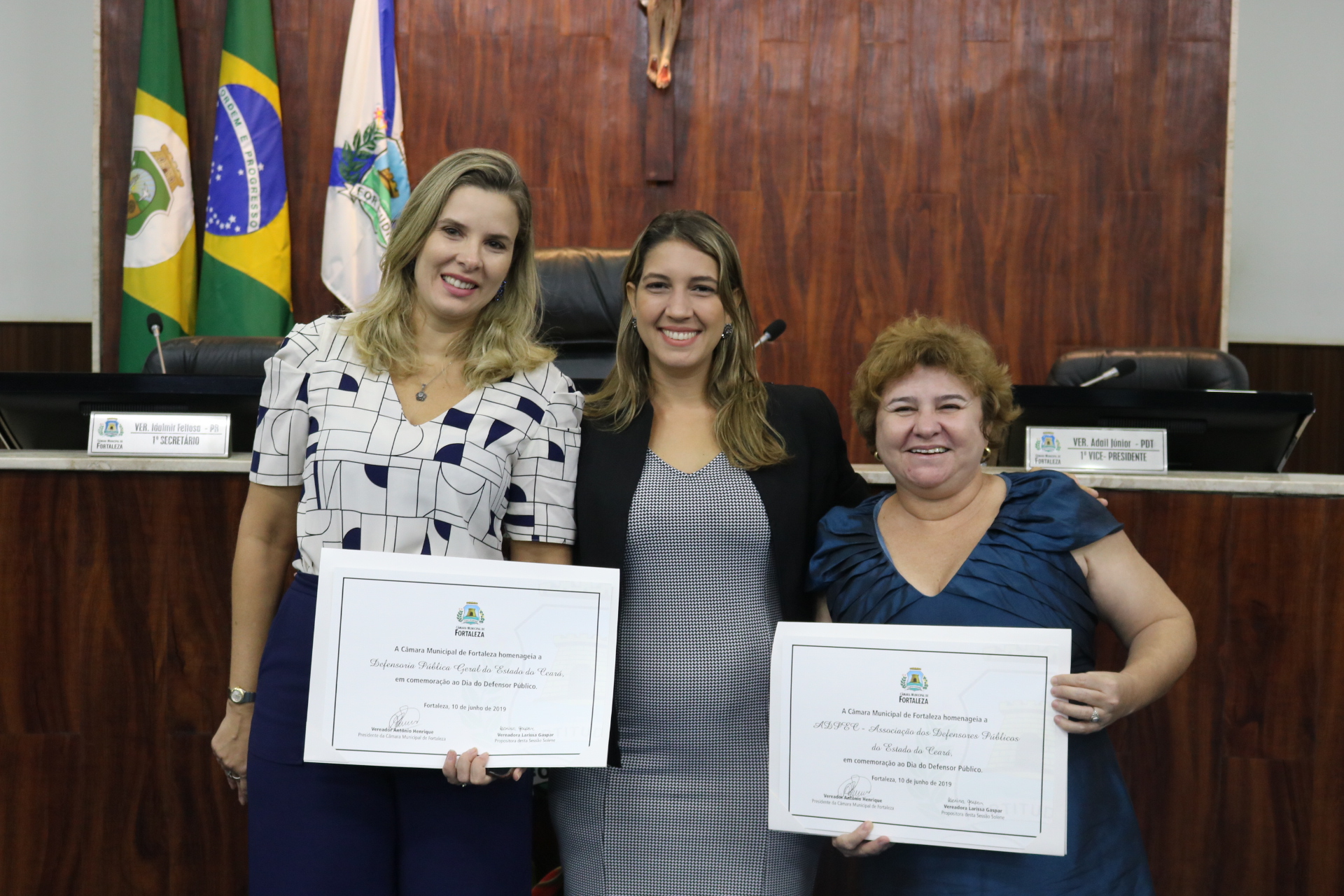 Na ocasião, foram homenageadas a Defensoria Pública do Estado do Ceará e a Associação dos Defensores e Defensoras Públicos do Estado do Ceará (Adpec). Mariana Lobo e Amélia Rocha, receberam as comendas de homenagens às instituições. Participaram ainda da solenidade o subdefensor geral, Leonardo Antônio de Moura Junior, o assessor de Planejamento e Controle, Samuel Marques, além dos defensores públicos Ana Cristina Soares de Alencar, Elizabeth Chagas, José Lino Fonteles, Francisco Rubens de Lima Júnior e Adriano Leitinho.